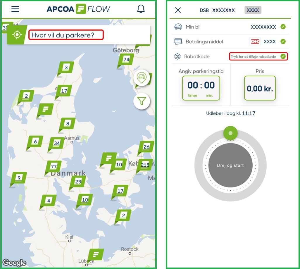 + Få adgang med en gratis DSB Plus og APCOA FLOW profil