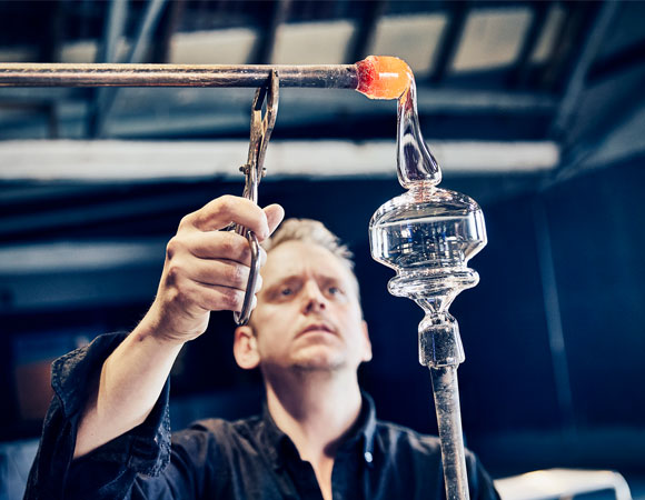 Du kan selv prøve kræfter med både glas og ler i værksteder, hvor dygtige kunsthåndværkere står klar til at hjælpe dig.